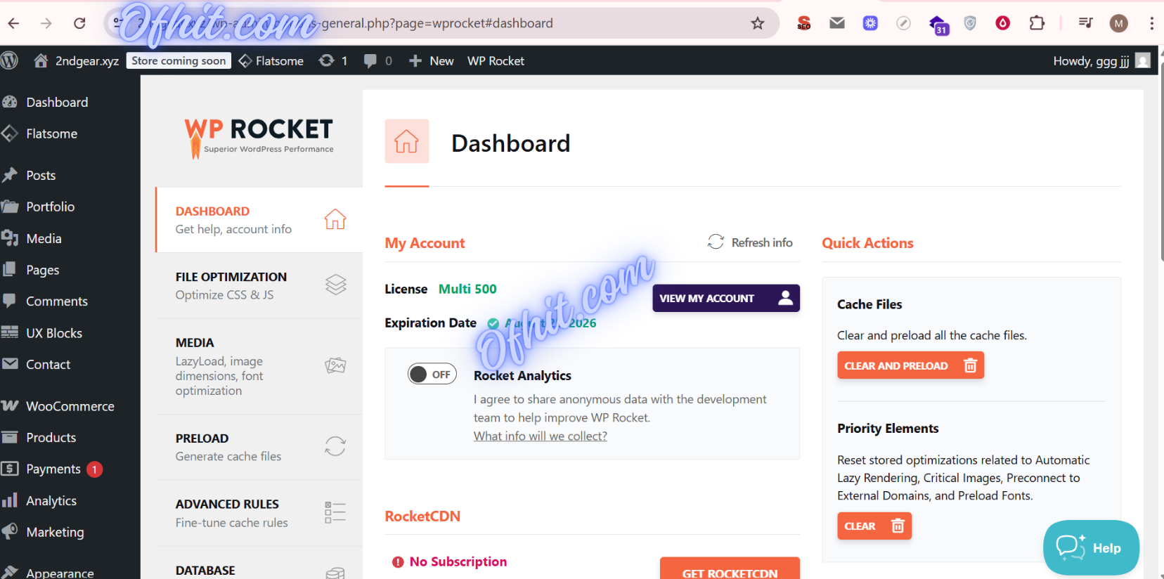 This activation provides access to the official WP Rocket dashboard via secure login, ensuring safe and reliable use of all premium functionalities.
