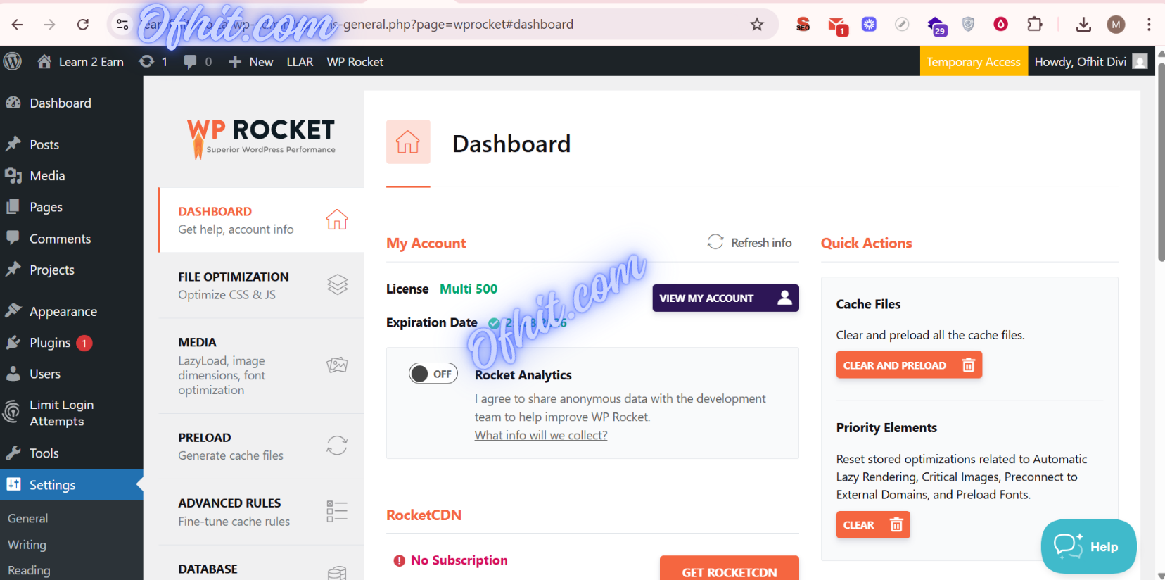 WP Rocket License Key Activation – 1 Year Update